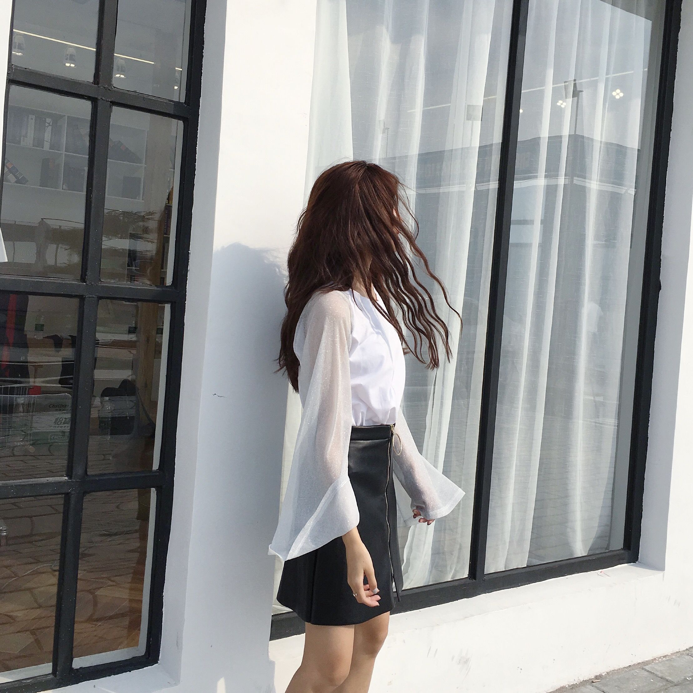 寬大的水袖材質是blingbling的紗面料,防曬又遮肉顯瘦
