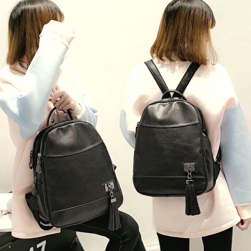 雙肩包女韓版時尚百搭個性歐美簡約流蘇包包新款女士背包女潮