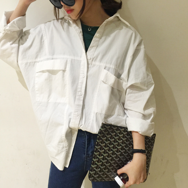 / 夏季新款女裝薄款學生休閑寬松顯瘦百搭長袖防嗮開衫襯衫外套女