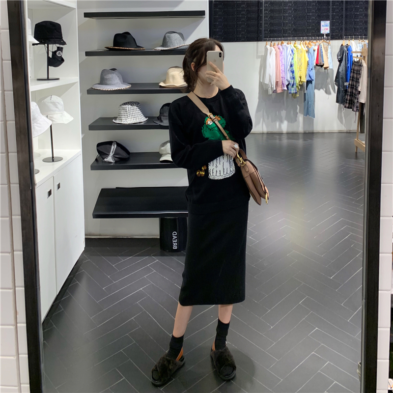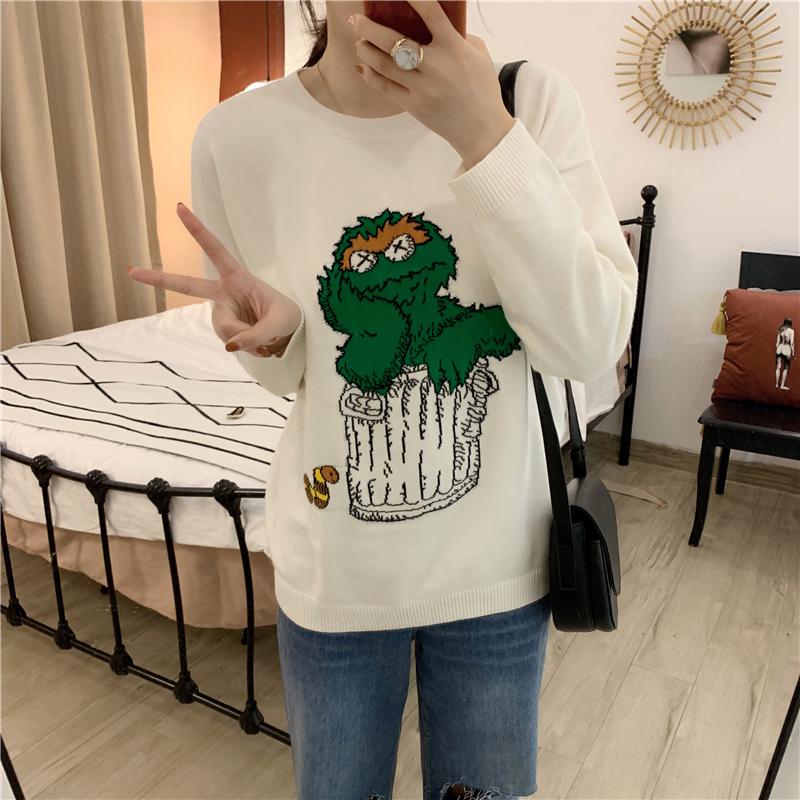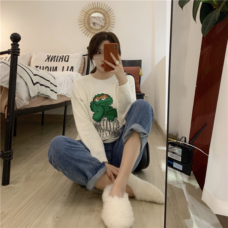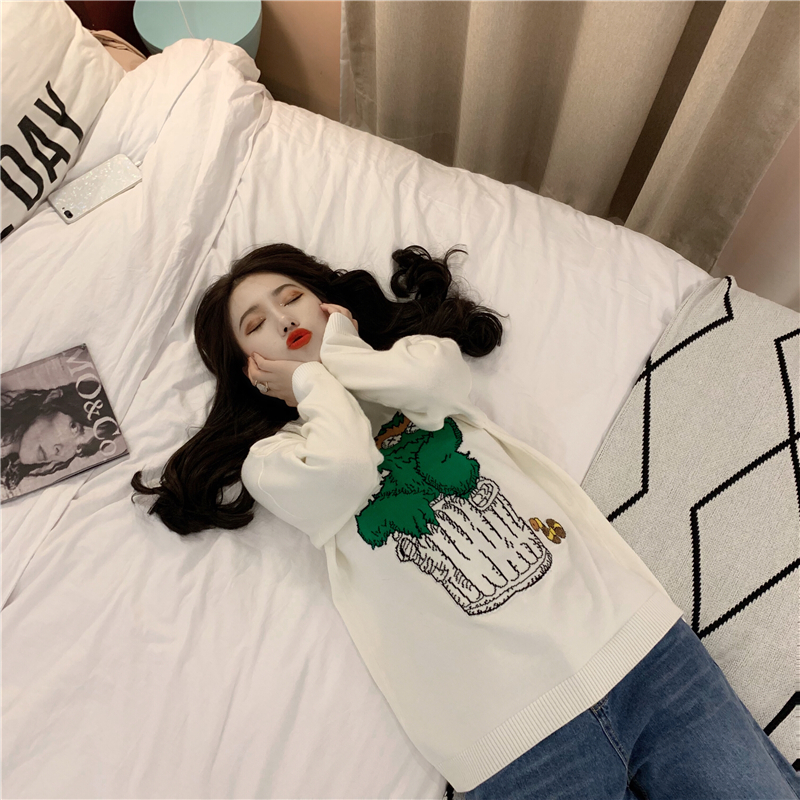 可愛卡通網紅同款2018新款秋冬寬松慵懶風套頭毛衣女長袖針織上衣