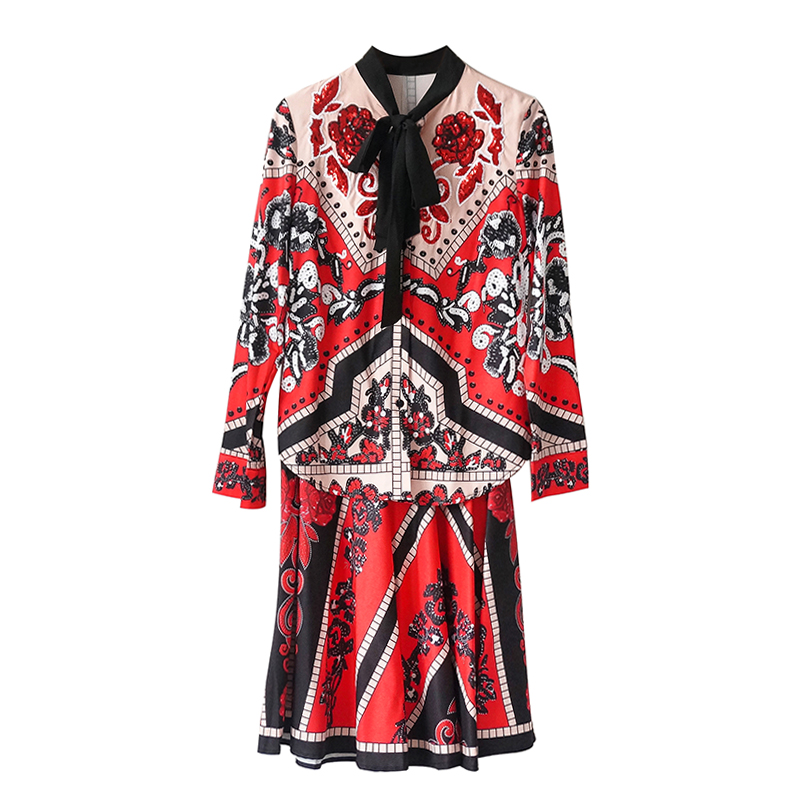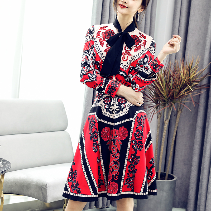 / 名媛氣質2018秋季新款女神范網紅復古時尚套裝亮片領結港味兩件套