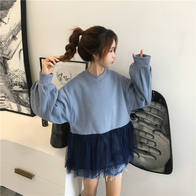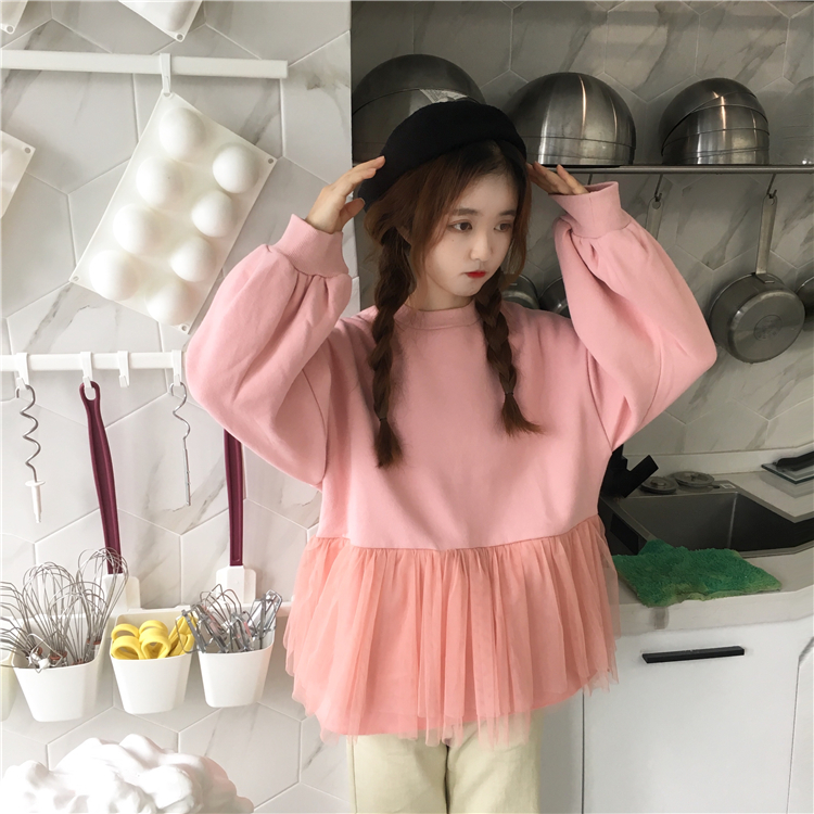 / 秋冬2018新款韓版BF風寬松網紗拼接pp home超火酷衛衣上衣外套女