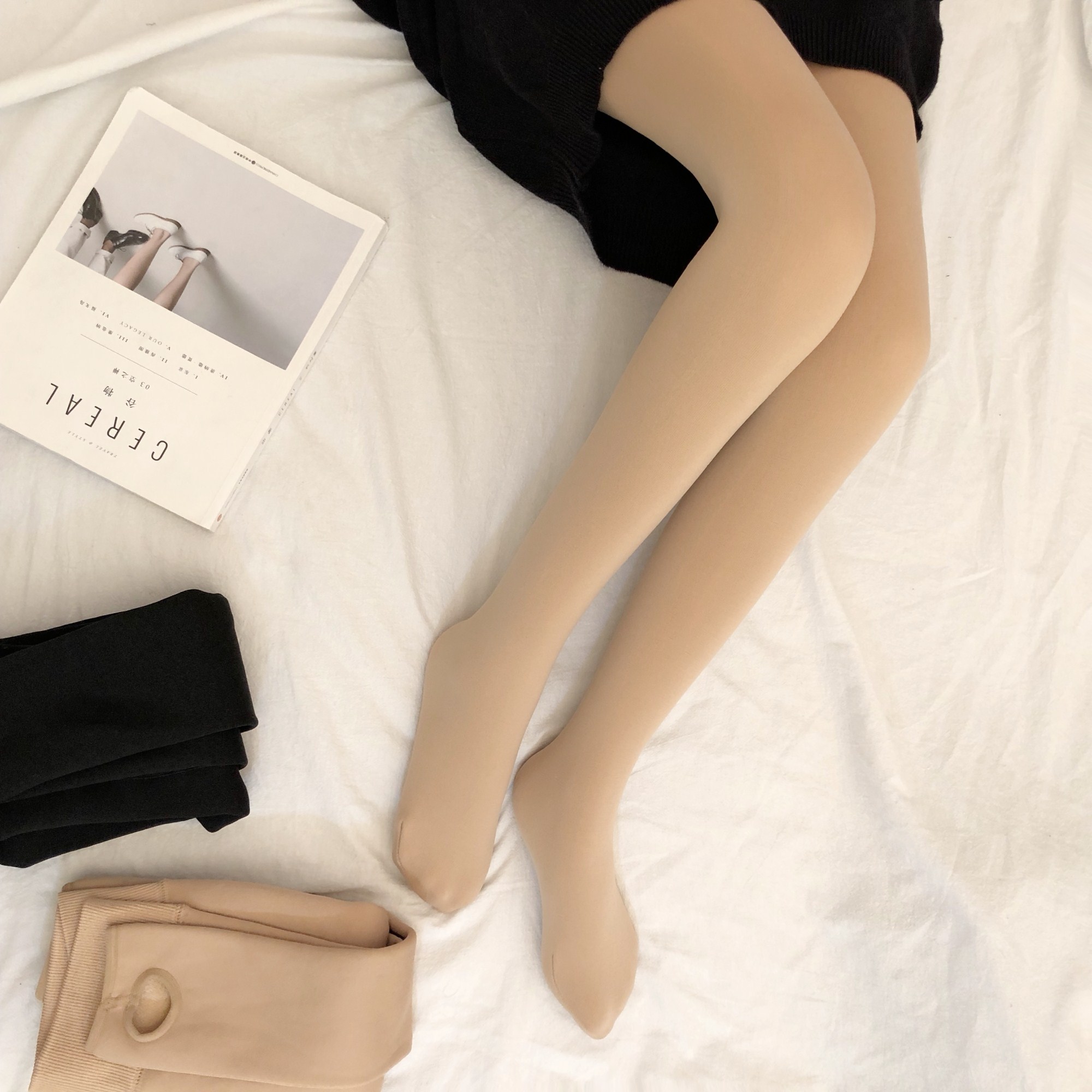 這是一款讓人非常驚喜的加絨襪,不臃腫,顯腿細!