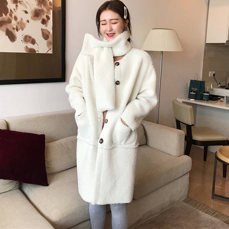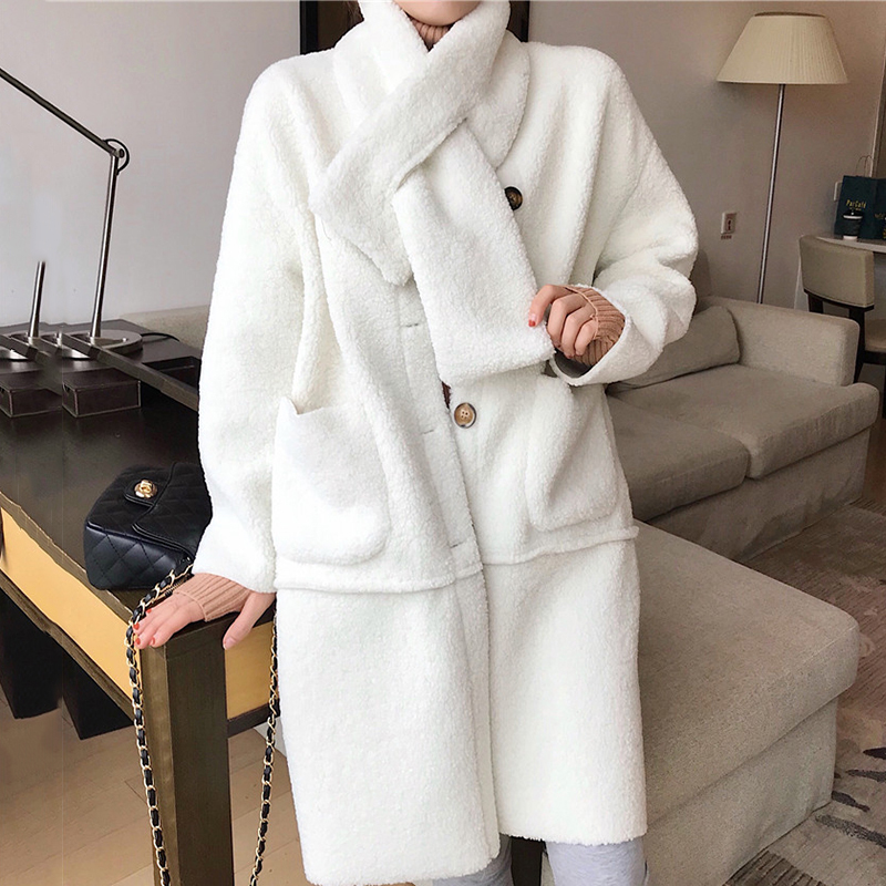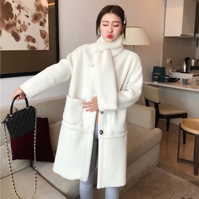 2018流行大衣女秋冬裝新款韓版寬松百搭中長款單排扣羊羔毛外套潮