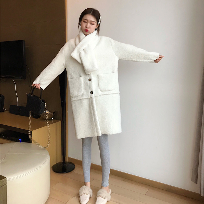 / 2018流行大衣女秋冬裝新款韓版寬松百搭中長款單排扣羊羔毛外套潮