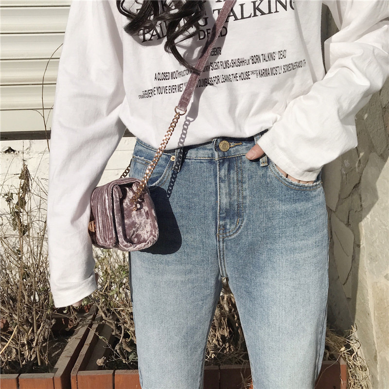 秋裝高腰顯瘦須邊復古九分牛仔褲女學生韓版百搭做舊水洗直筒褲潮