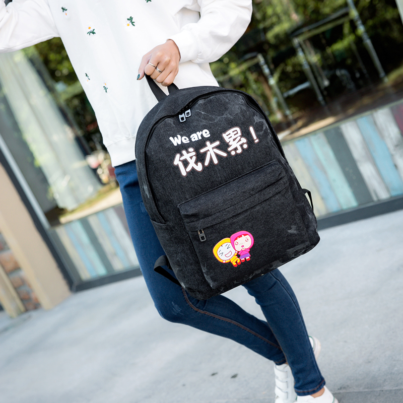 17新款雙肩包女韓版百搭學院風印花書包媽咪簡約時尚潮旅行女背包