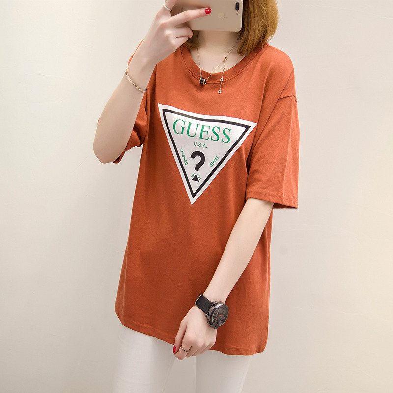 / 女裝春裝新款潮上衣中長款個性時尚短袖t恤女寬松韓版打底衫