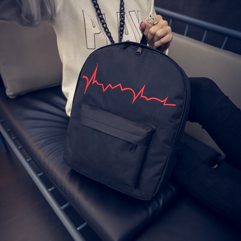 17ulzzang原宿休閑雙背刺繡東大門心電圖學生書包情侶純色雙背