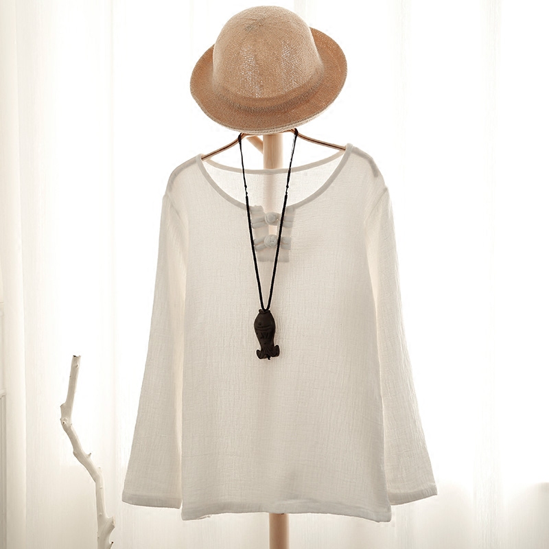 / 春裝新款女裝純棉上衣中長款打底衫圓領寬松長袖t恤純色休閑