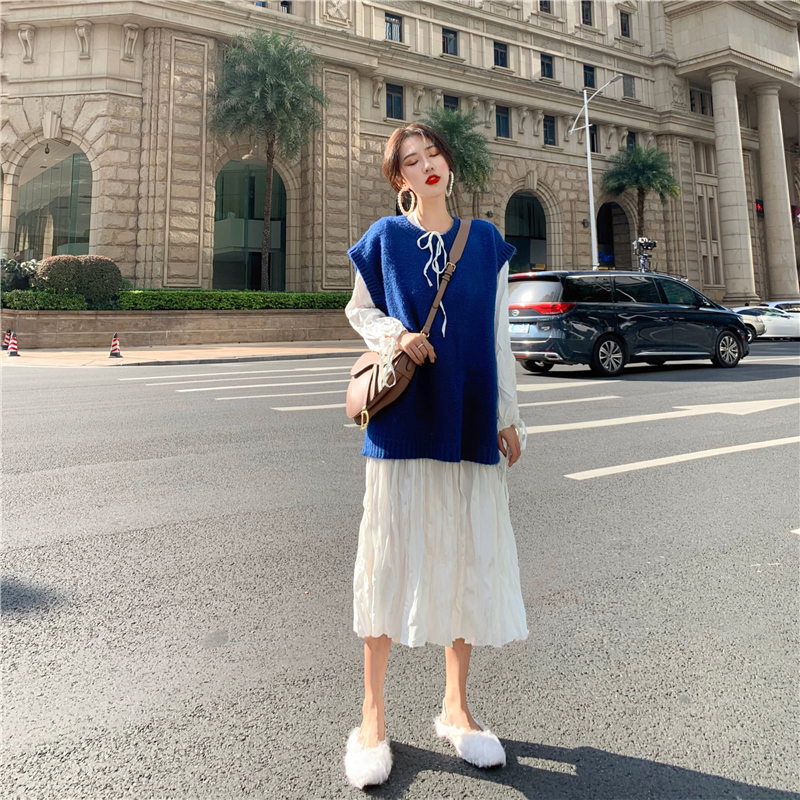 我覺得在秋冬,這樣的連衣裙用來搭配毛衣,