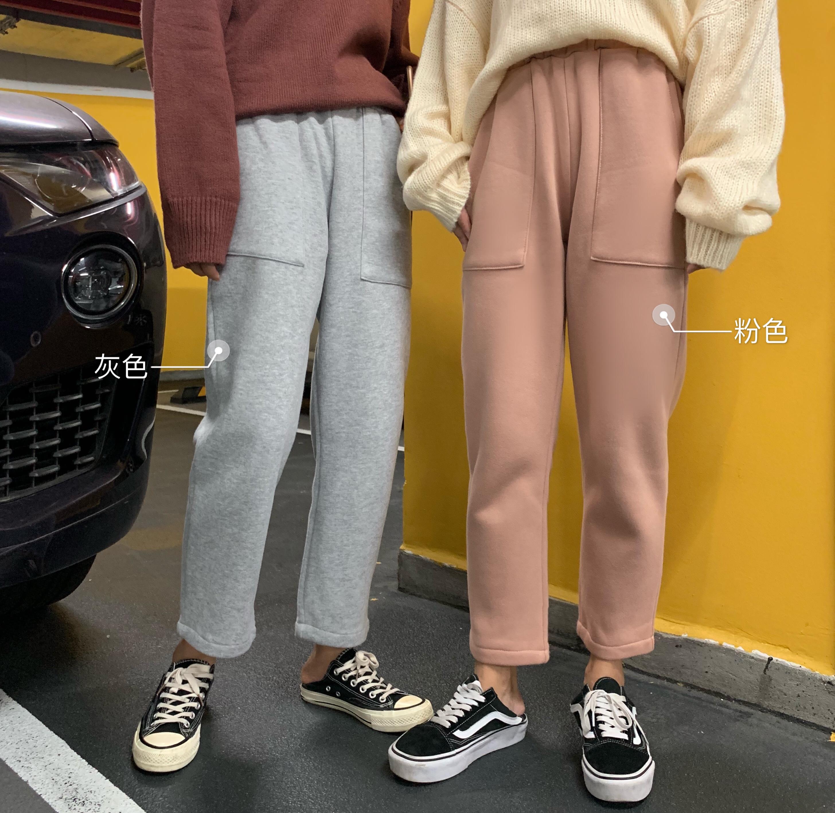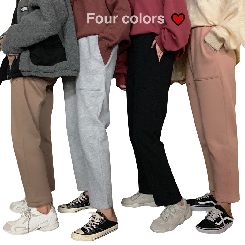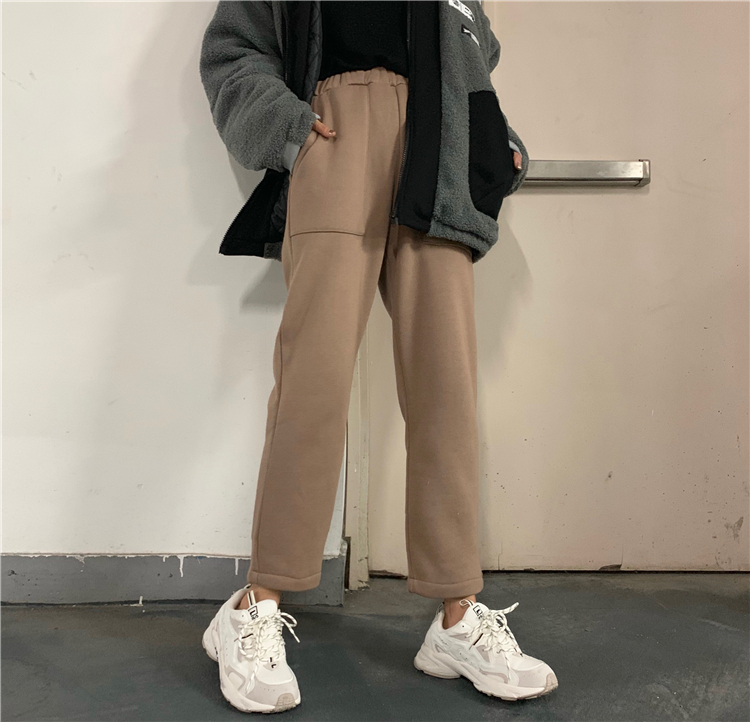 / 秋冬韓版寬松厚實直筒褲高腰加絨加厚闊腿褲休閑褲長褲學生褲子女