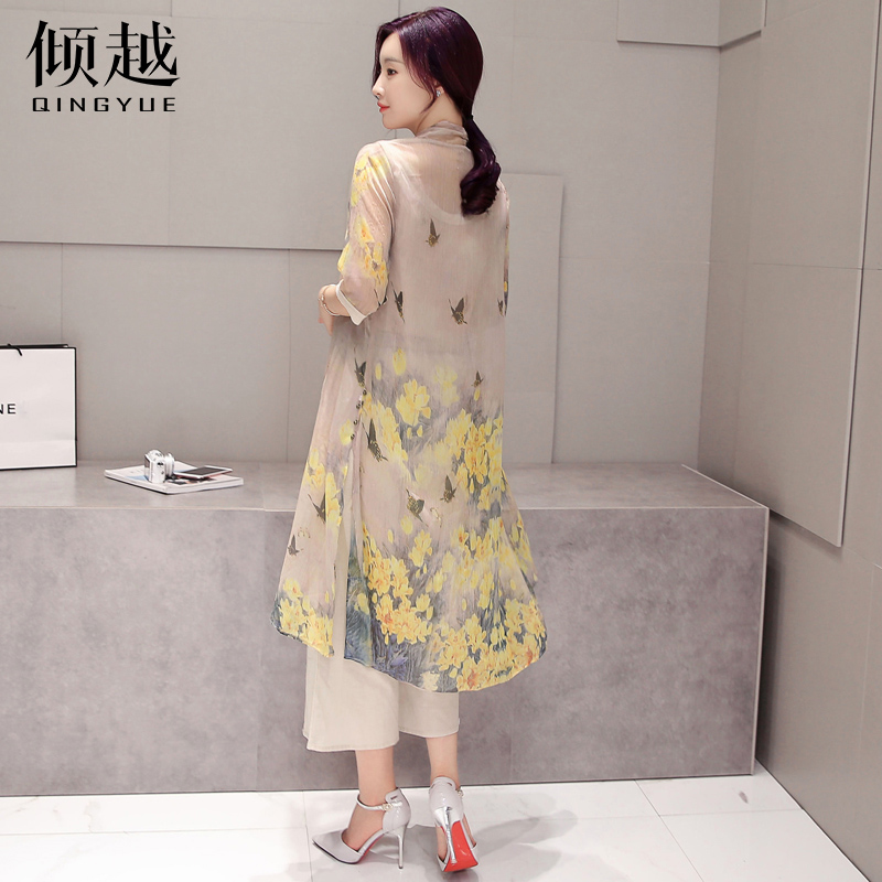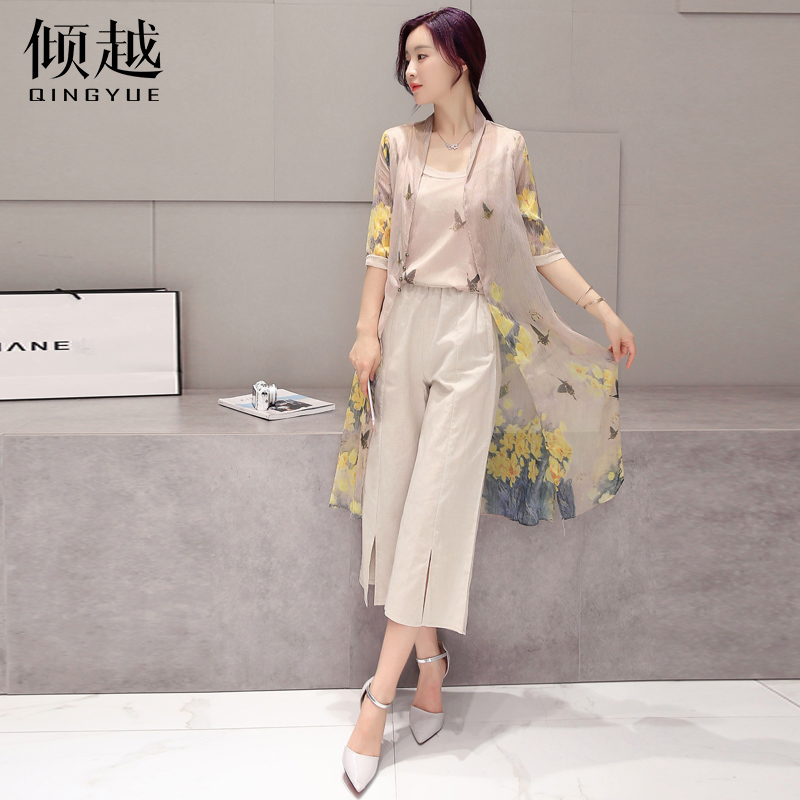 傾越春夏套裝2017新款女裝寬松雪紡上衣七分褲三件套韓版氣質百搭