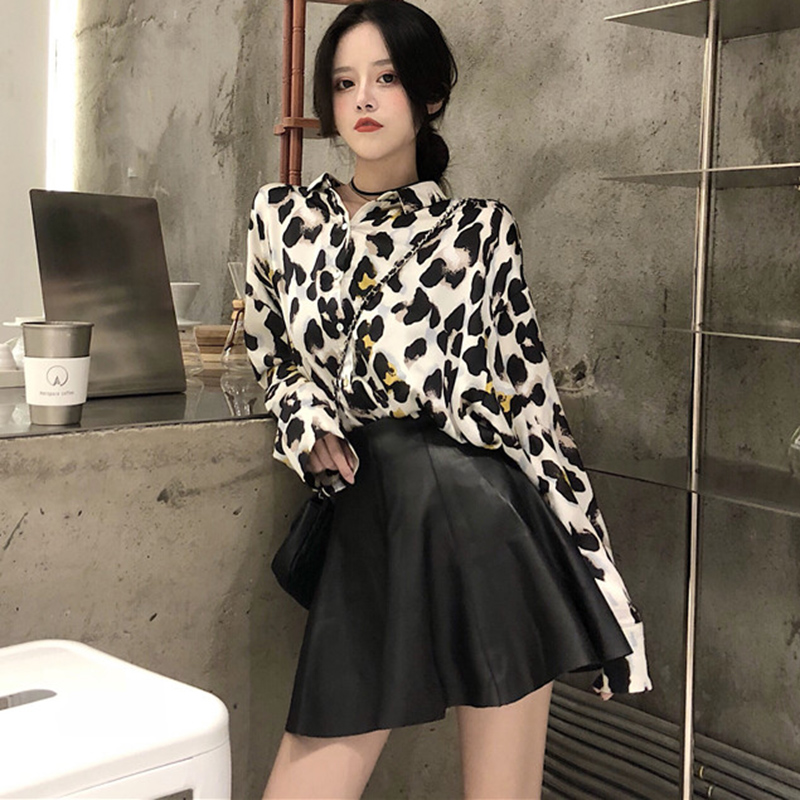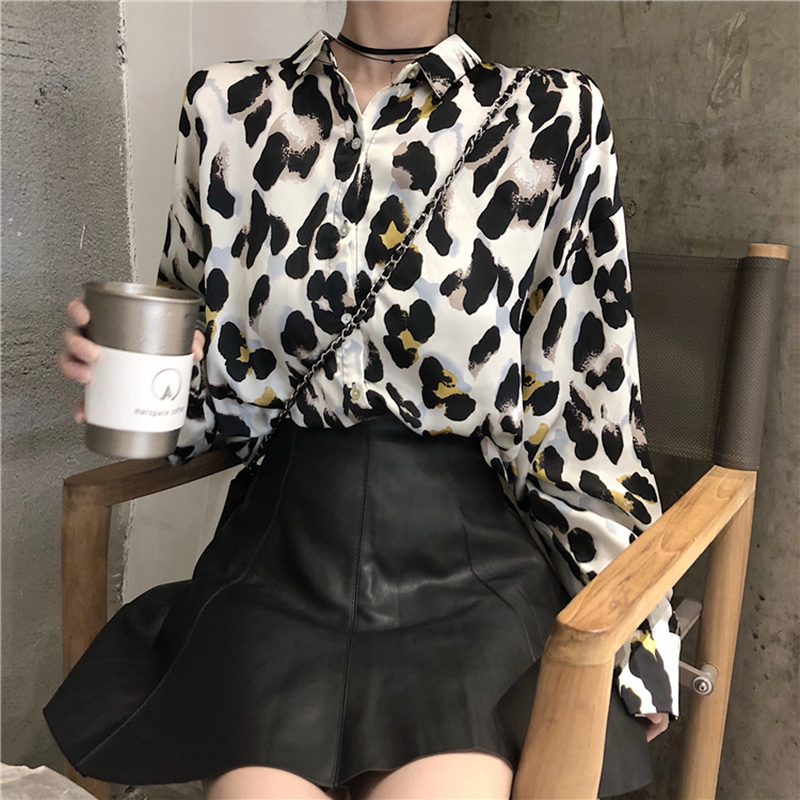 / 秋裝新款復古時尚豹紋襯衫學生衣服女寬松長袖防曬外套襯衣女裝潮