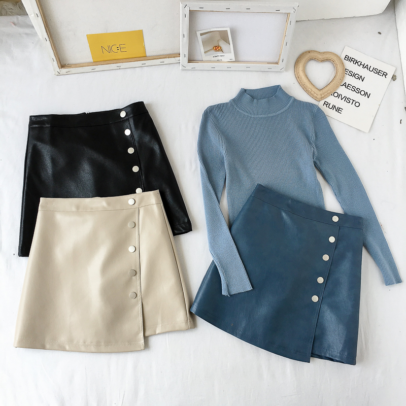 / 秋裝女2018新款韓版百搭防走光不規則洗水皮裙包臀短裙A字半身裙