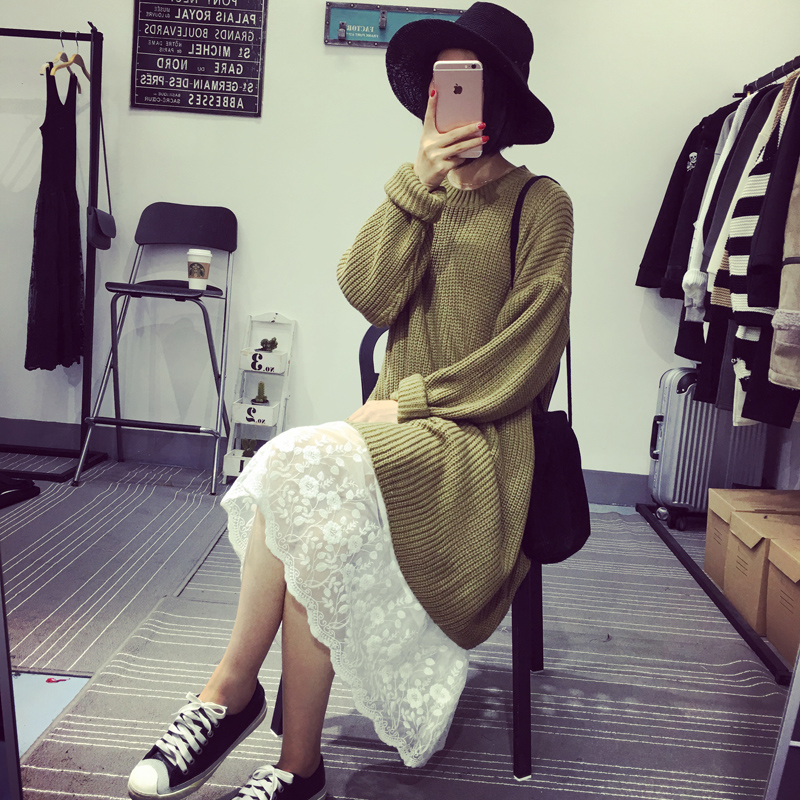 / 2016秋冬新款韓版百搭蕾絲拼接內搭背心裙無袖中長款打底連衣裙女
