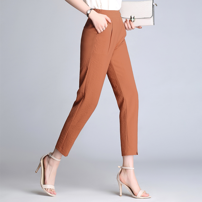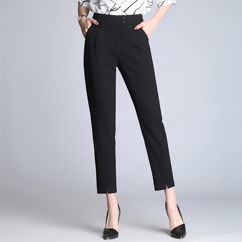 / 春裝新款韓版高腰微喇褲開叉顯瘦九分西褲黑色小喇叭褲子女夏