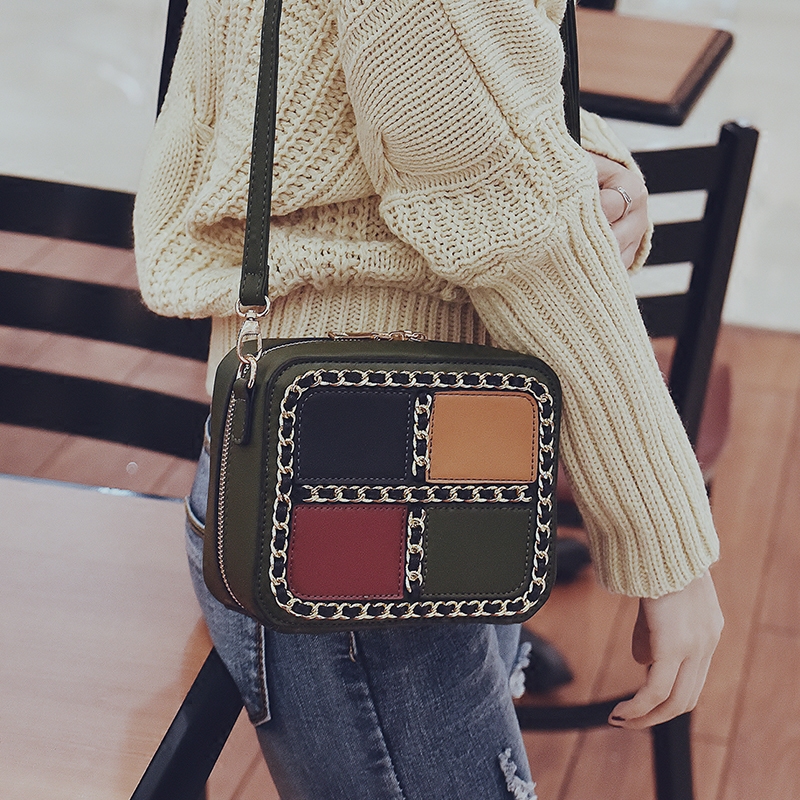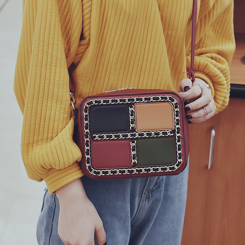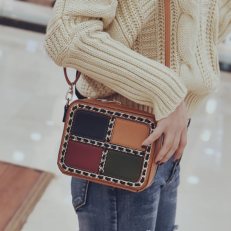 / 新款潮撞色盒子包迷你小方包韓版鏈條女包單肩斜挎包女小包包