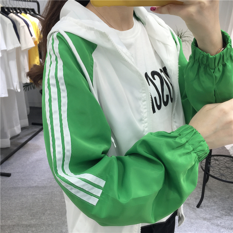 2017夏季bf原宿風防曬衣女潮韓版寬松連帽風衣學生運動短款薄外套