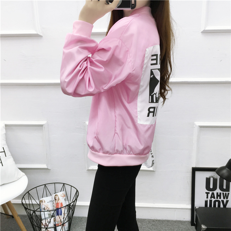 韓版bf原宿風百搭寬松刺繡棒球服貼布字母男女情侶班服外套夾克潮