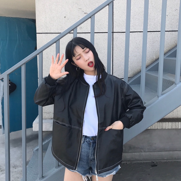 秋季女裝2018新款韓版BF風寬松機車服pu皮衣學生飛行員皮夾克外套