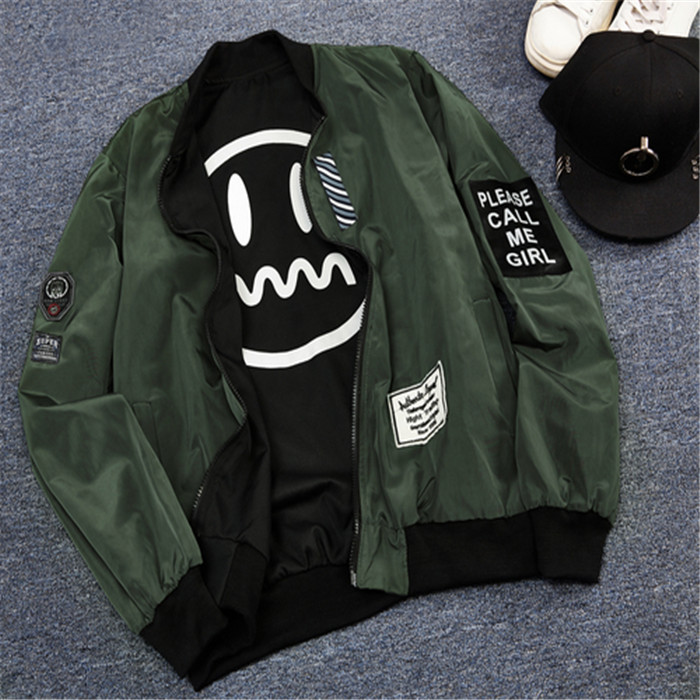 2017秋季新款青少年夾克寬松棒球服笑臉雙面穿薄款外套韓版潮學生