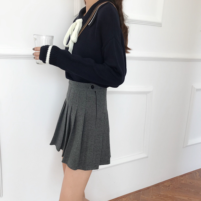 / 秋冬韓版加厚百搭顯瘦呢子百褶裙高腰A字裙半身裙短裙學生裙子女