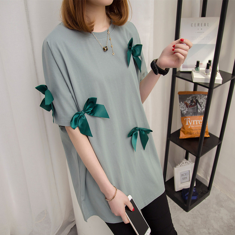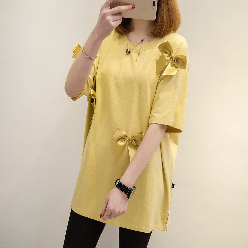 女裝夏裝新款潮白色t恤女半袖五分袖中長款韓版寬松百搭體恤