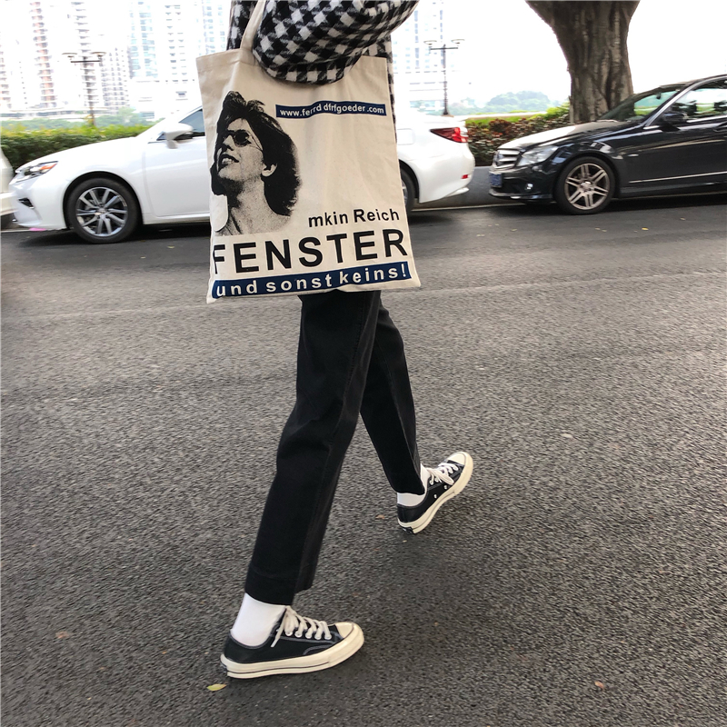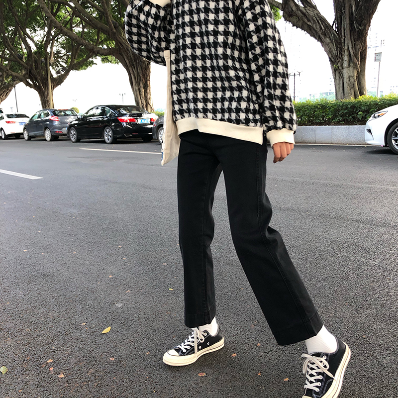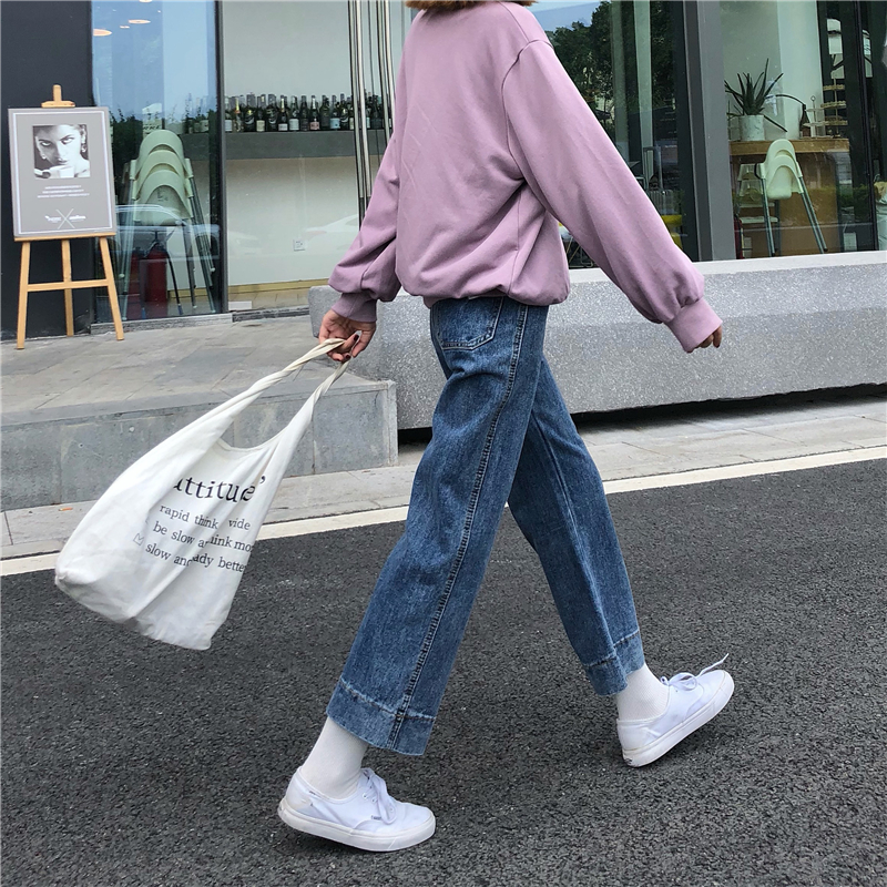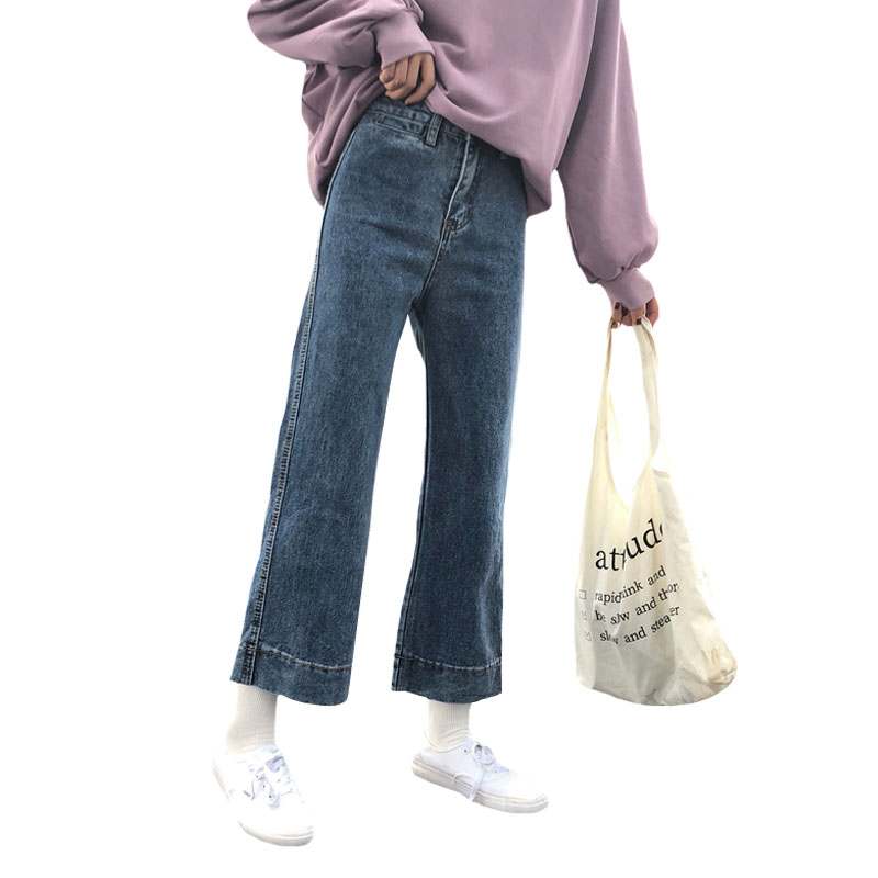 / 秋冬女裝韓版簡約寬松百搭闊腿褲牛仔褲高腰直筒褲九分褲學生褲子