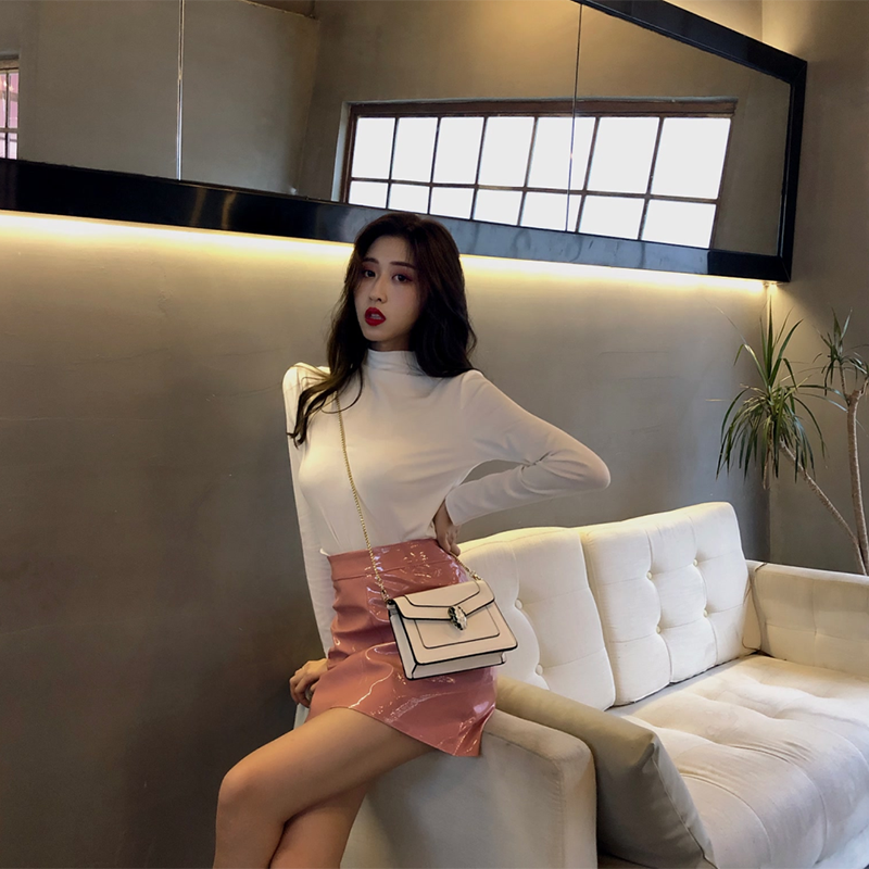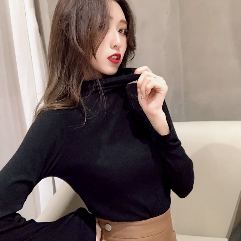 初秋新款女上衣韓版時尚chic基礎款百搭顯瘦高領純色打底衫t恤女