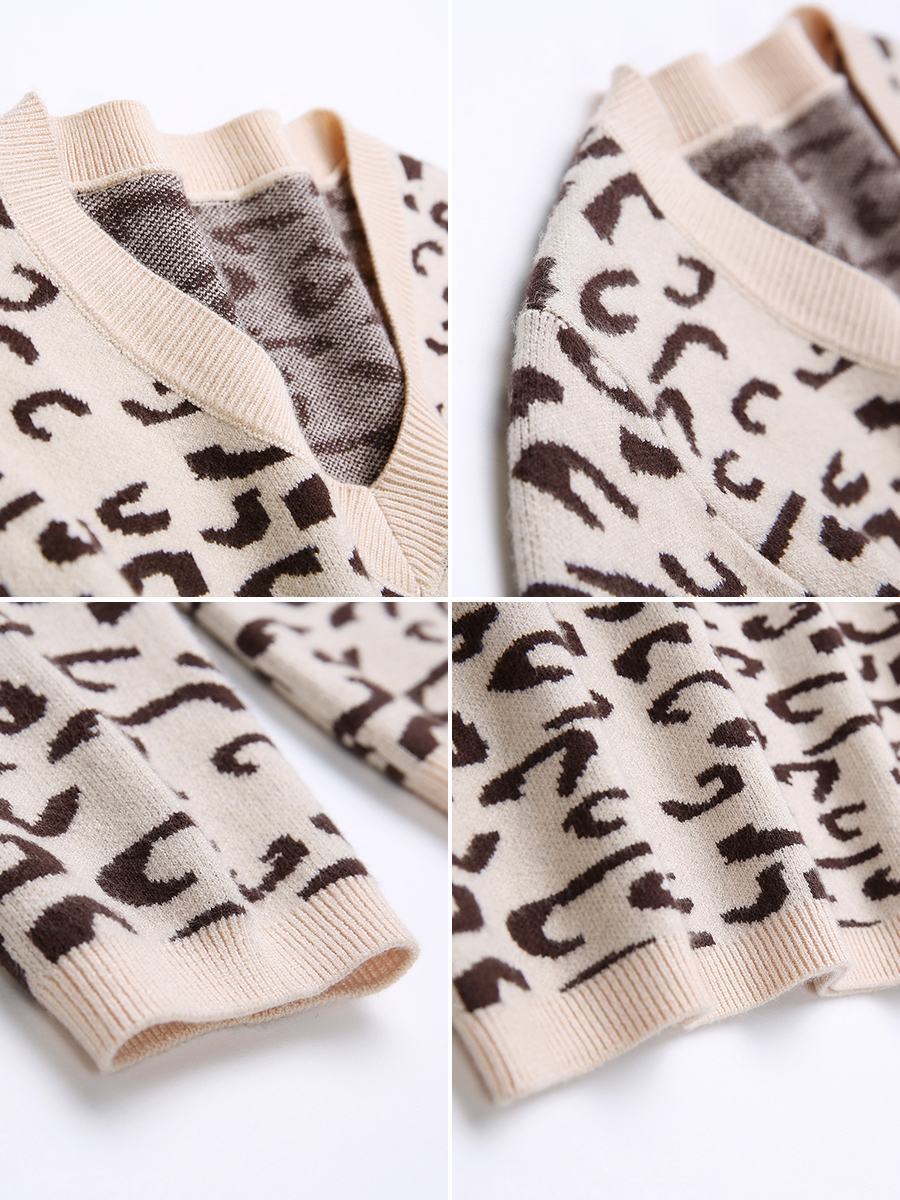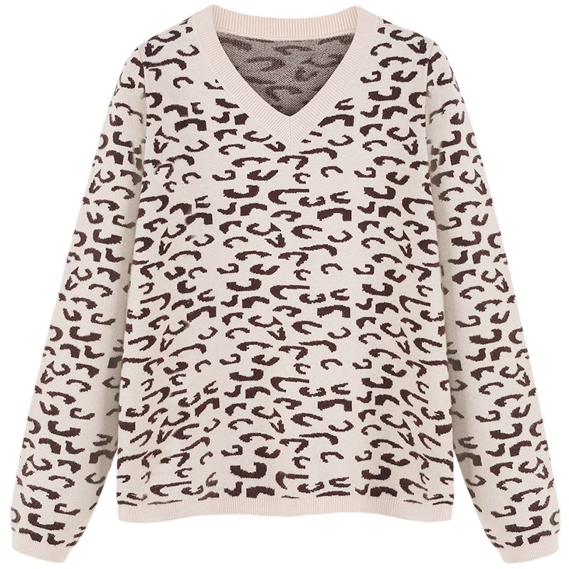 【直降50元】【58元雙11清倉】 MG小象時尚氣質v領休閑豹紋毛衣
