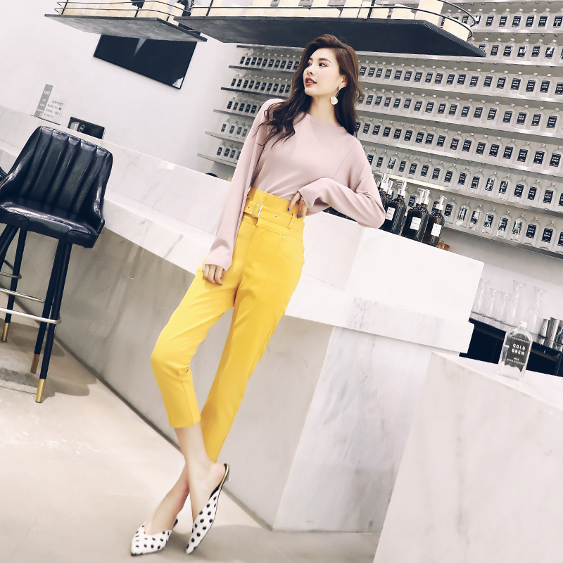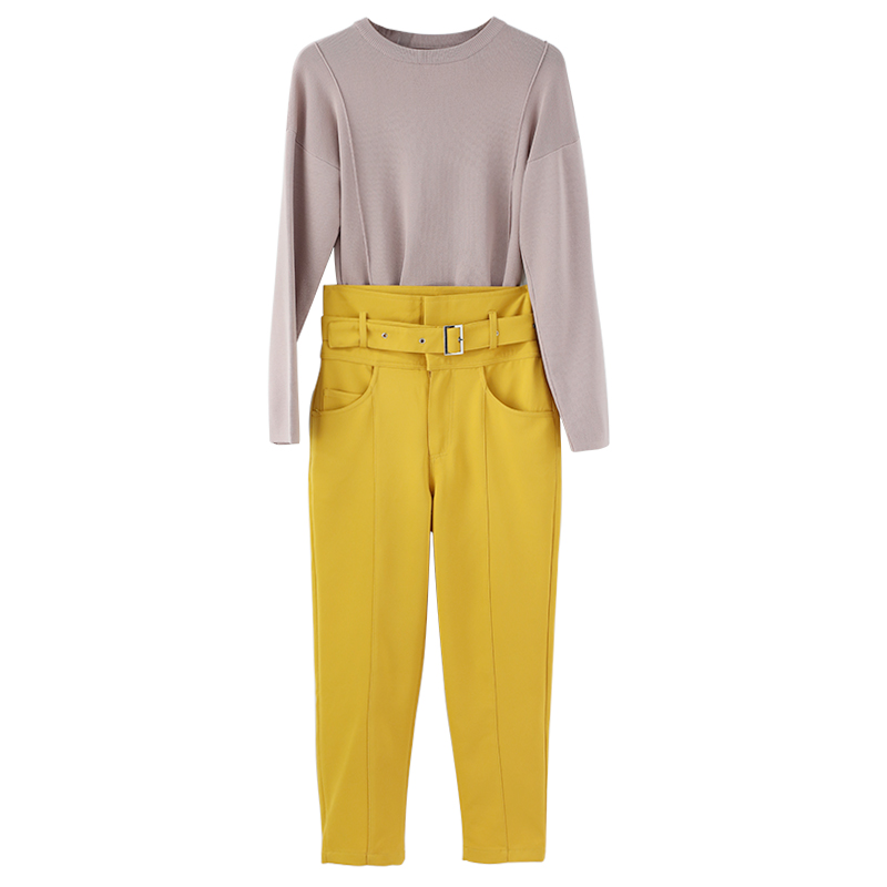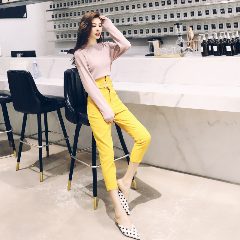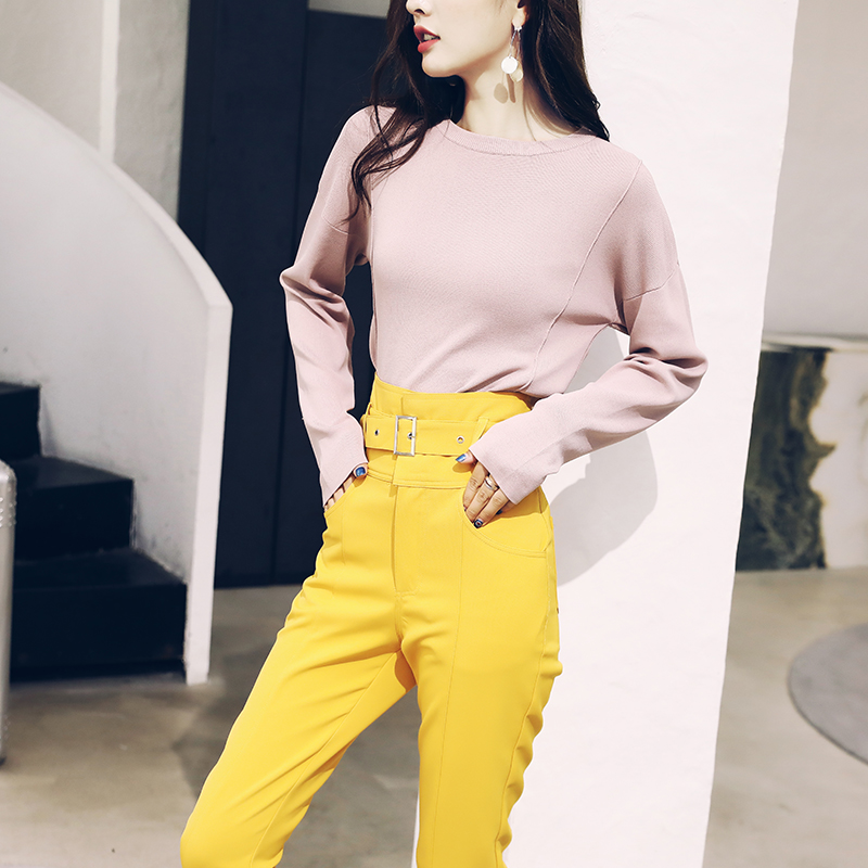 復古套裝女秋季2018新款港味網紅針織上衣高腰小腳褲兩件套裝潮