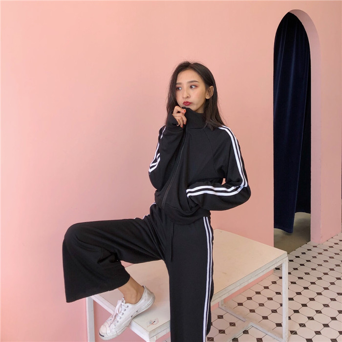 / 秋裝女2018新款套裝兩件套復古百搭短款外套+寬松休閑松緊長褲潮