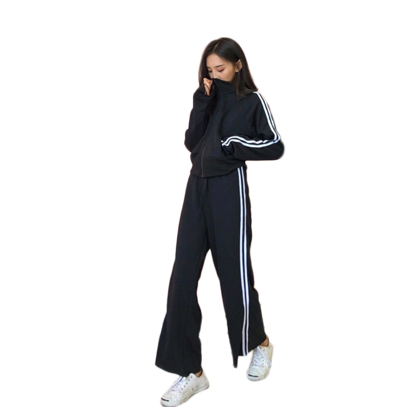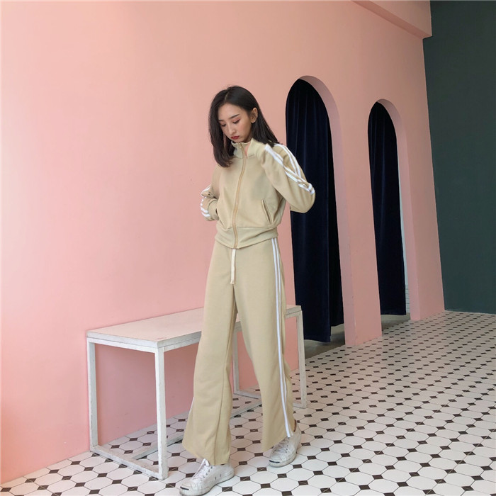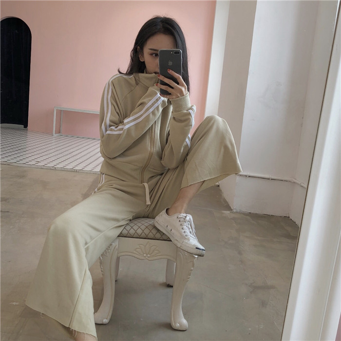 秋裝女2018新款套裝兩件套復古百搭短款外套+寬松休閑松緊長褲潮