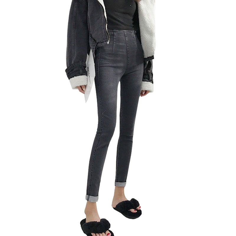 / 秋季韓版水洗復古做舊高腰顯腿修身黑灰牛仔褲鉛筆褲小腳褲長褲女
