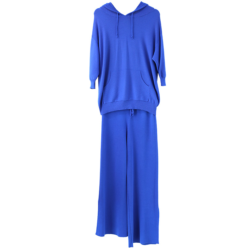 名媛休閑連帽衛衣闊腳褲針織套裝女2018秋冬新款純色毛衣長褲套裝
