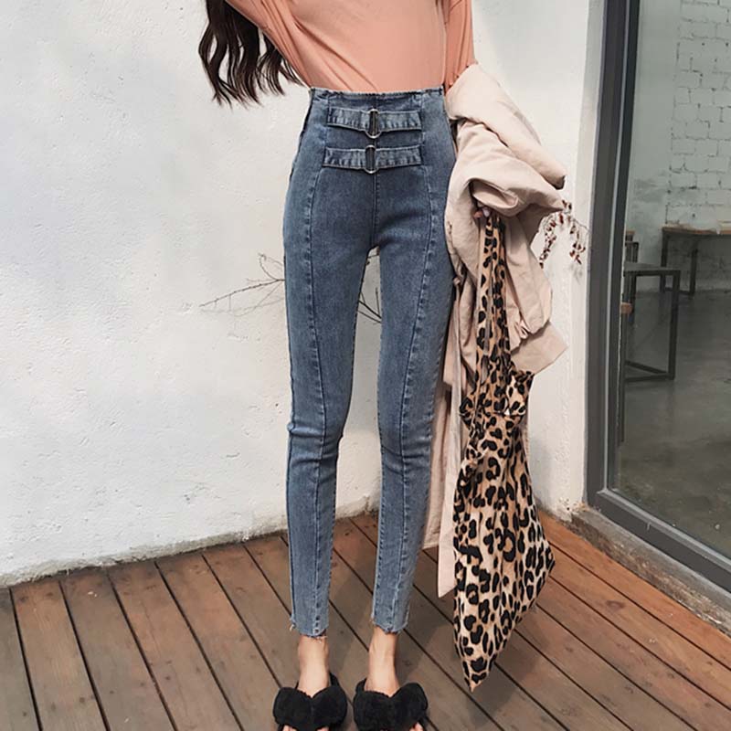 個性高腰修身鉛筆褲秋裝女2018新款彈力小腳牛仔褲學生休閑長褲子