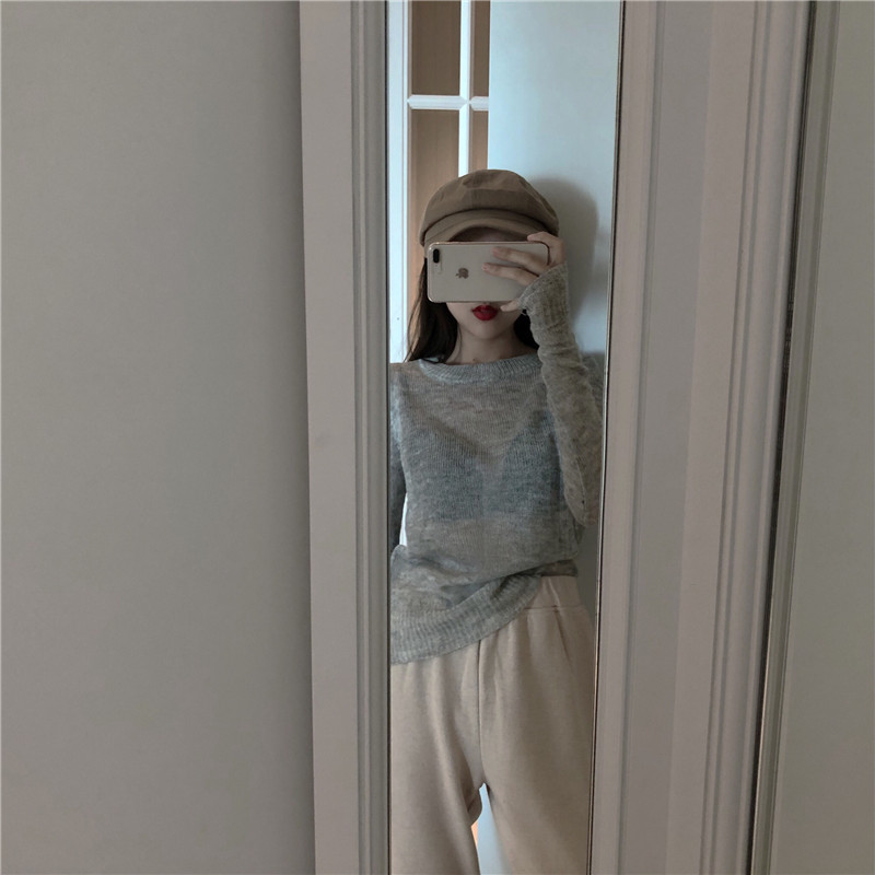 早秋上衣慵懶風修身毛衣女外套雪花微透打底圓領針織柔軟毛衣~2色