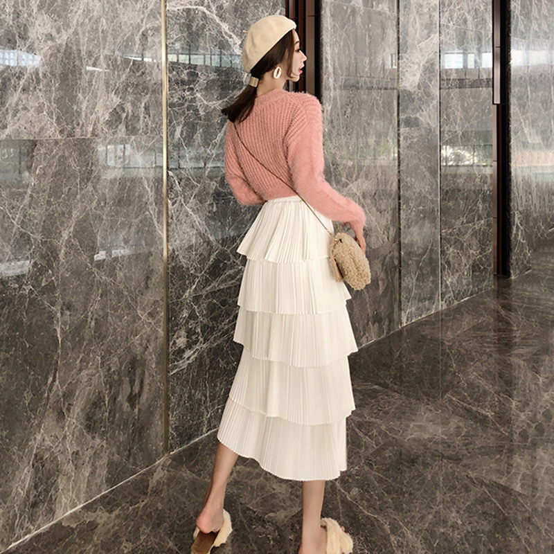 / 秋冬女裝2018新款復古風高腰顯瘦中長蛋糕裙學生時尚黑色半身裙子