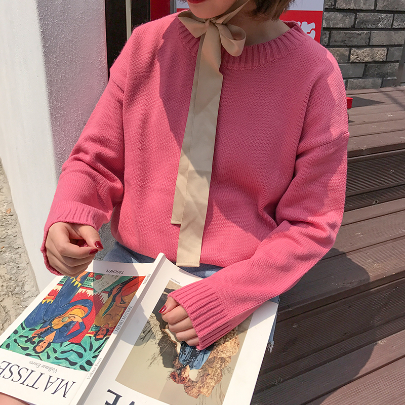 / 秋裝女裝新款韓版純色基礎款寬松百搭圓領套頭毛衣長袖針織衫上衣