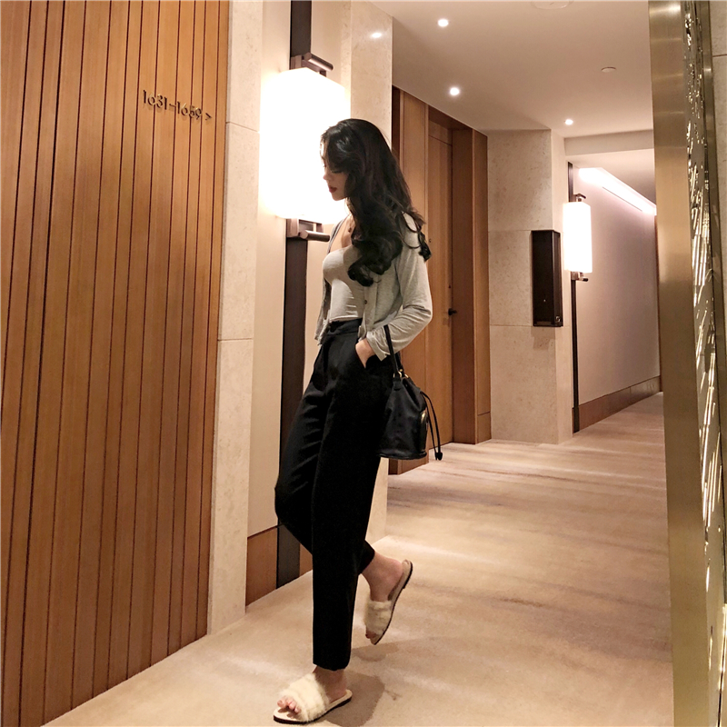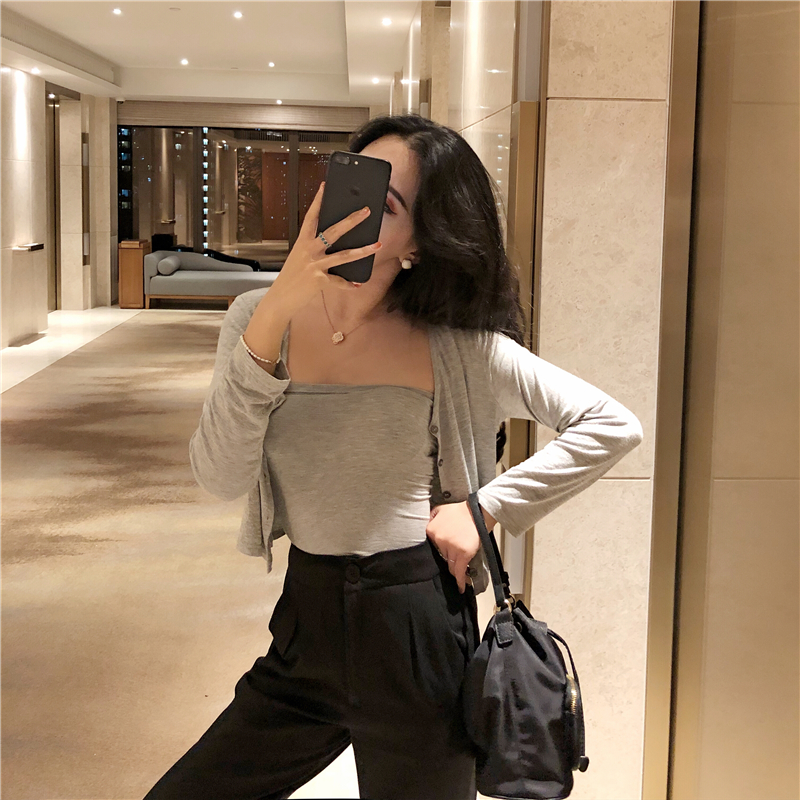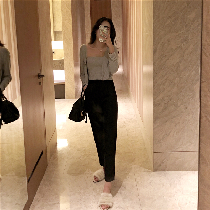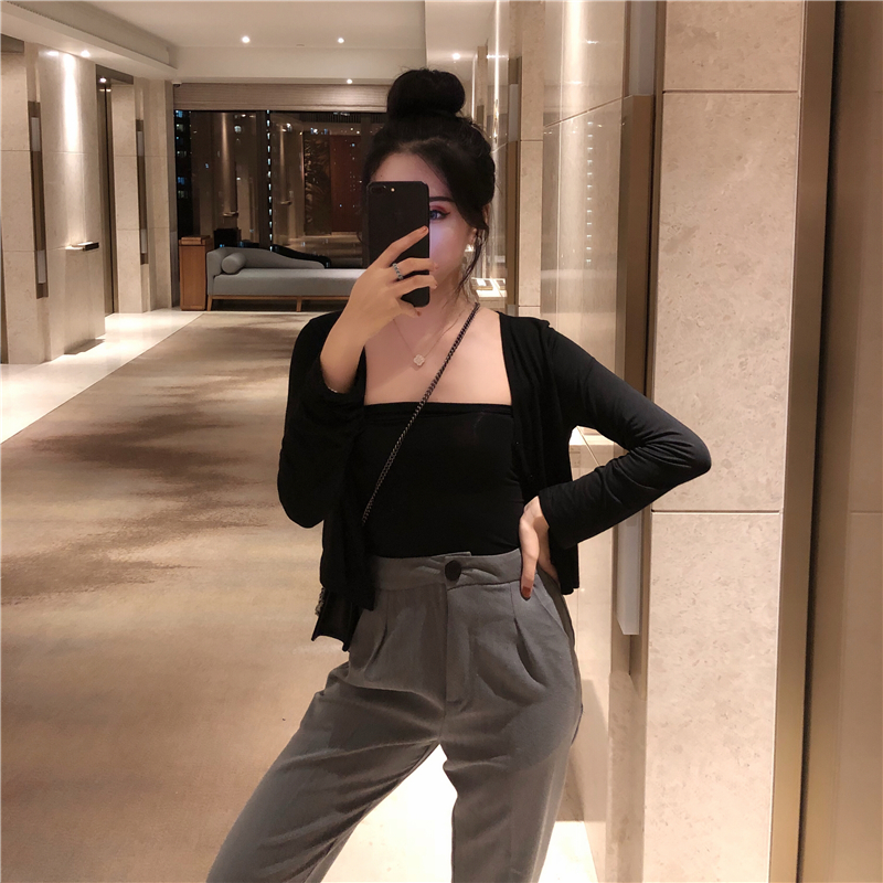 秋裝女2018新款抹胸開衫短外套兩件套+顯瘦九分哈倫褲煙管褲子女