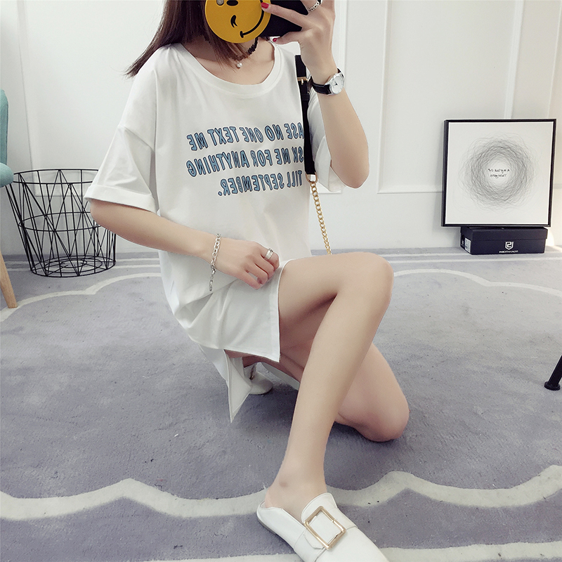 / 短袖t恤女寬松韓版學生百搭春裝新款潮中長款打底衫夏季女裝