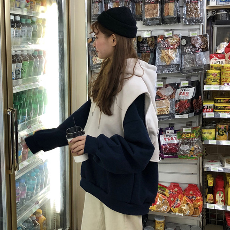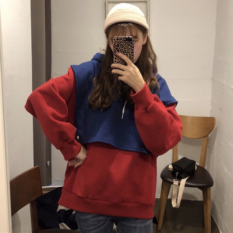 / 秋冬女裝2018新款原宿風可拆開寬松加絨連帽衛衣兩件套休閑外套潮