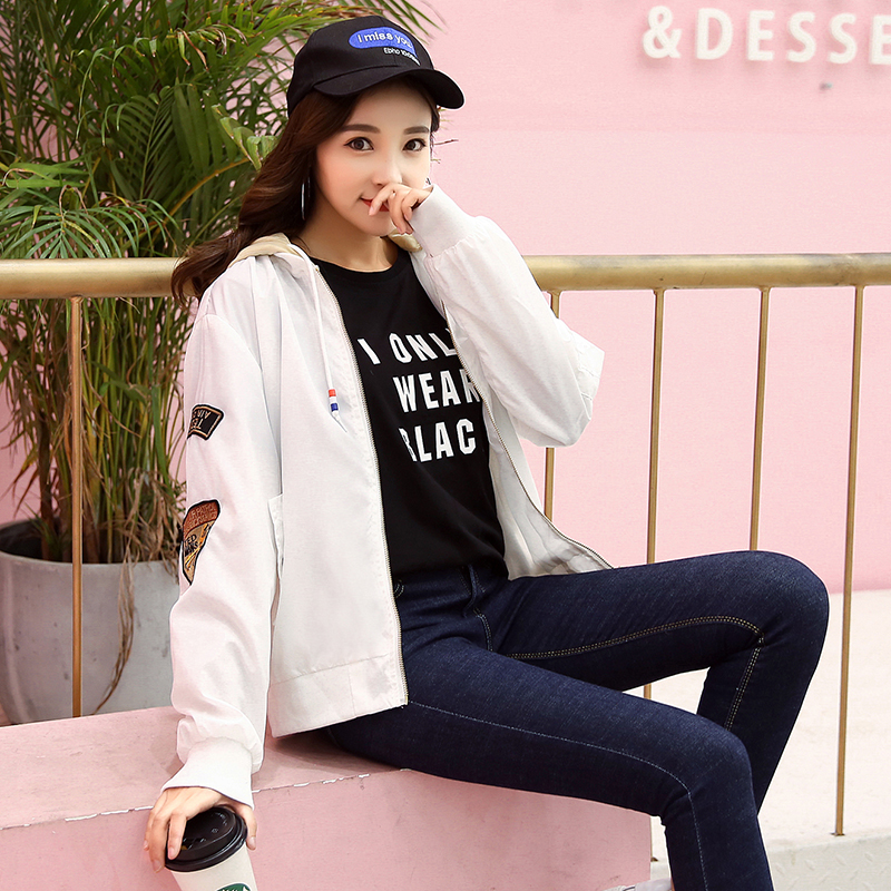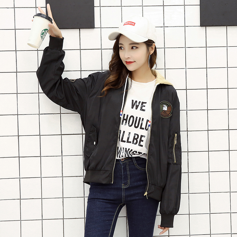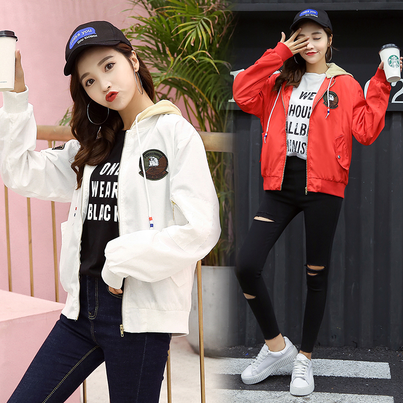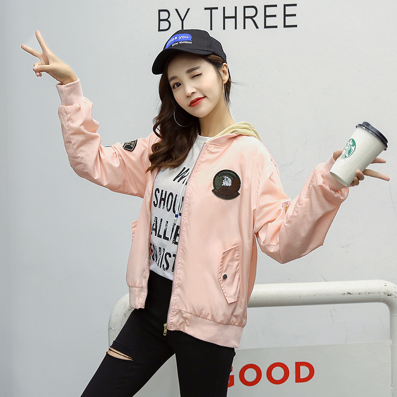 / 原宿風字母印花拼色棒球服百搭學生夾克上衣BF寬松情侶裝短外套女