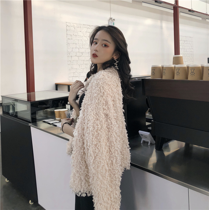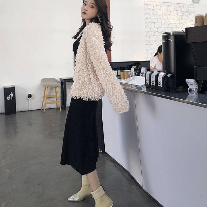 港味時尚套裝毛毛開衫外套+吊帶針織連衣裙女秋冬2018新款兩件套