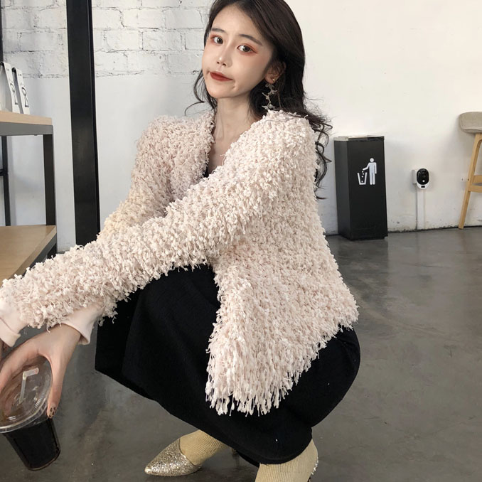 秋裝女2018新款套裝慵懶風寬松毛衣開衫+小香風銀絲半身裙兩件套