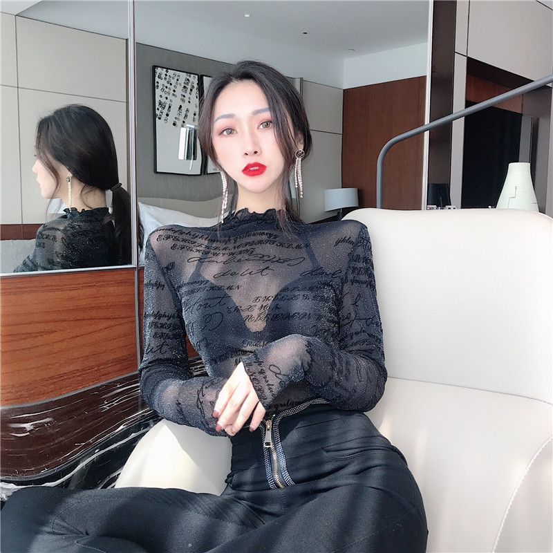 冬裝上衣女慵懶長袖t袖女韓版氣質立領性感修身百搭長袖打底衫潮