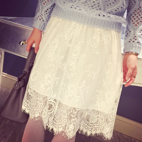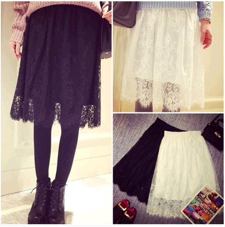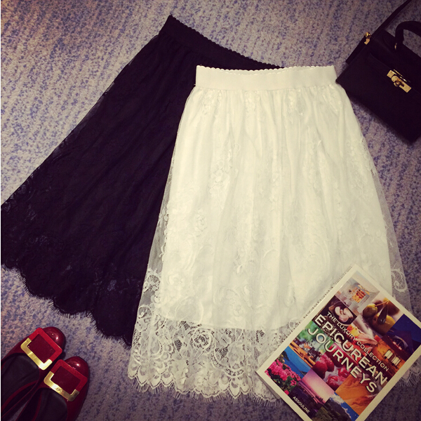 / 2017春夏新款韓版大碼顯瘦高腰中長裙蕾絲睫毛半身裙打底裙蓬蓬裙