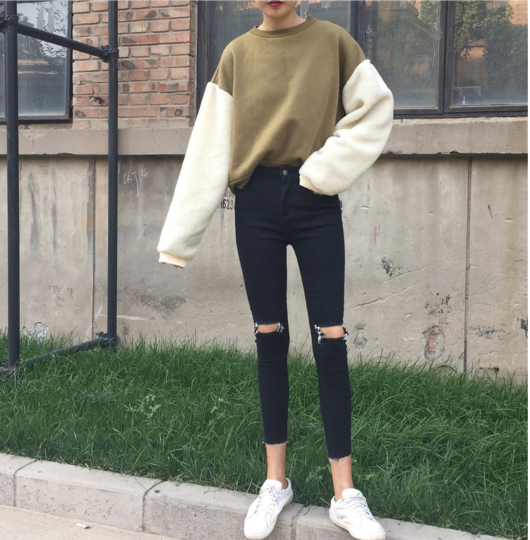 / 秋裝女裝韓版百搭高腰顯瘦彈力破洞牛仔褲緊身小腳褲九分褲鉛筆褲