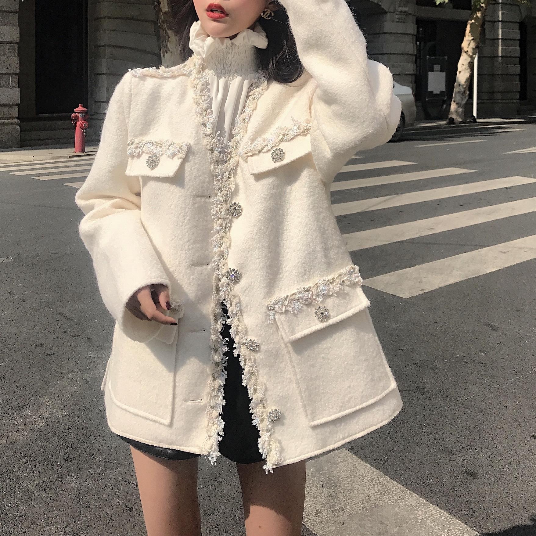 專門定制的鉆石花形扣裝飾點綴了整件衣服